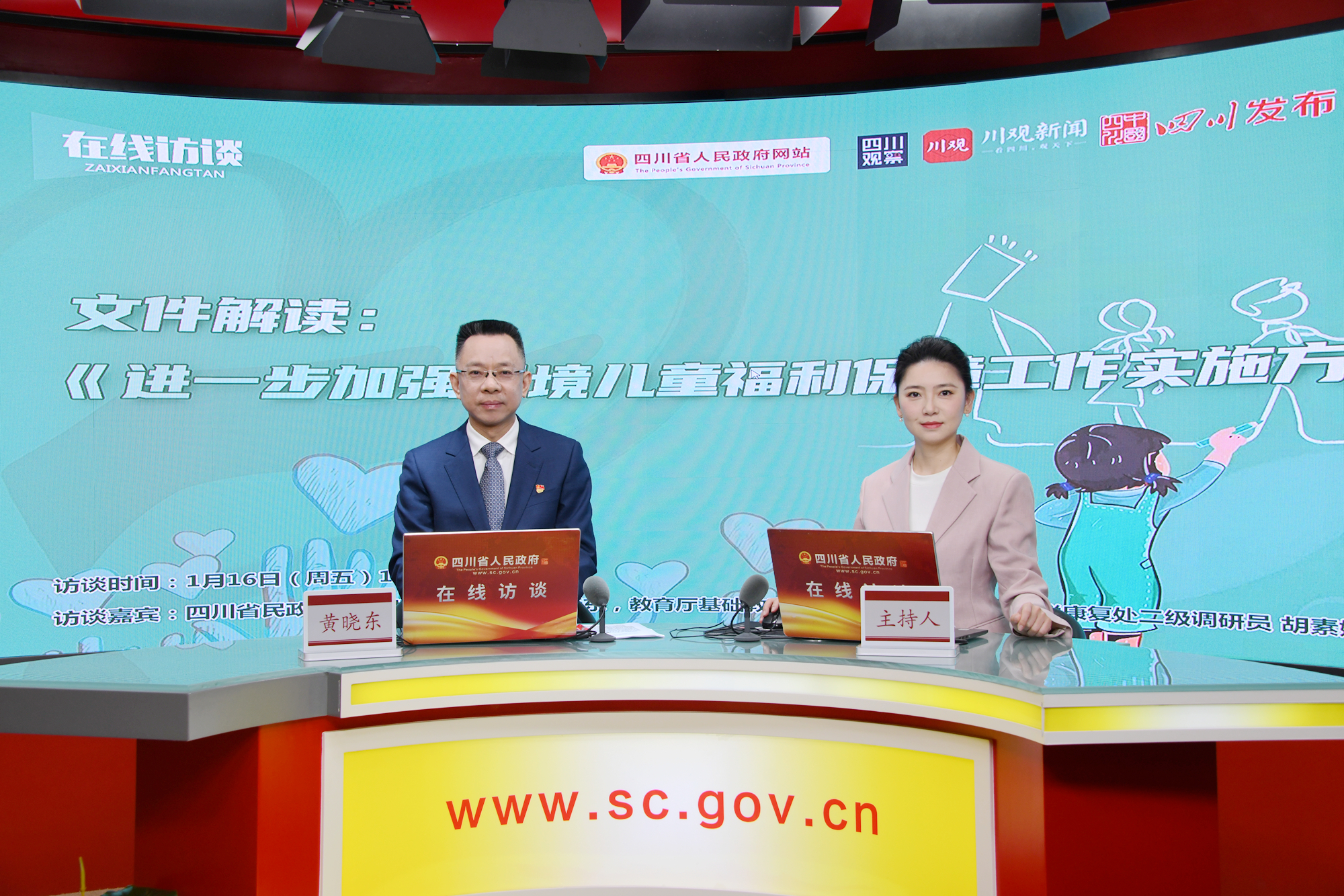 近期,四川省政府办公厅印发《进一步加强困境儿童福利保障工作实施方案》(下称《实施方案》),旨在加强困境儿童福利保障。1月16日上午,四川省民政厅党组成员、副厅长黄晓东等嘉宾,做客四川省人民政府网站在线访谈栏目,对《实施方案》内容进行解读,并与广大网友在线交流。