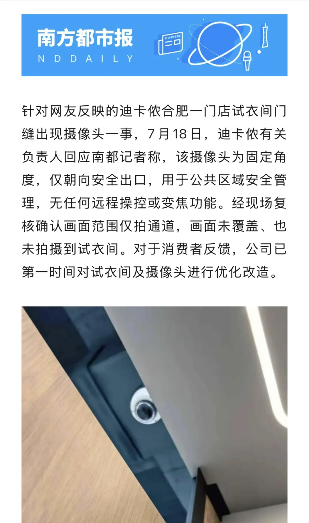 迪卡侬第一时间对试衣间和摄像头
